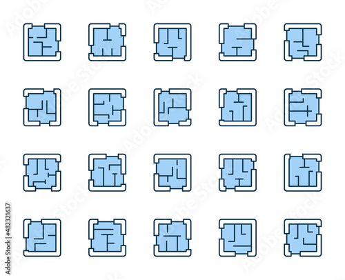 House plan set line icons in flat design with elements for web site design and mobile apps. Collection modern infographic logo and symbol. House vector line pictogram