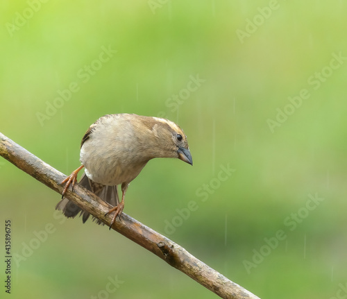 house sparrow in the rain