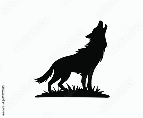 Howling wolf silhouette EPS vector art illustration template on a white background