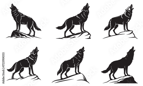 Howling Wolf Silhouettes on Rocks