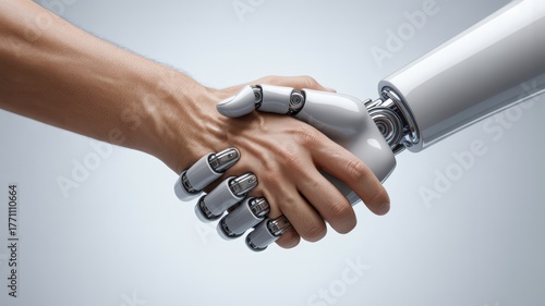 Human and Robot Hand Firm Grip Studio Photography