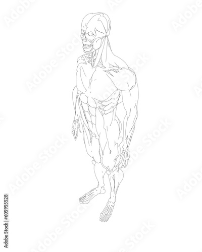 Human body anatomy male man contour , muscular system of muscles . Flat medical scheme poster of training healthcare gym outline, vector illustration. Male body muscular system sketch drawing..