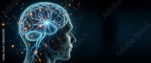 Human Brain and Neuron Connections Banner and Text Area Neural Nervous System Artificial Intelligence Medical Biotechnology Cyber Robotics