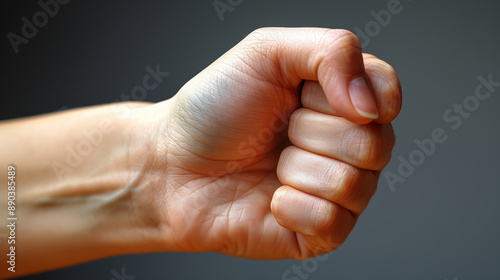 Human fist clenched tightly against dark background, showcasing strength and determination. Concept of power, resistance, and human emotion.