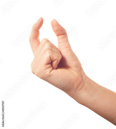 Human hand holding something with two fingers
