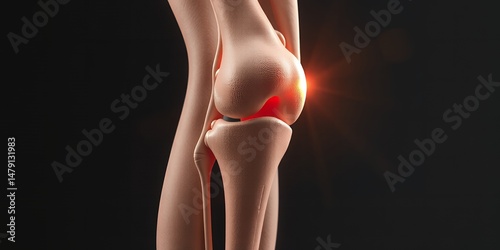 Human Knee Joint Anatomy 3D Medical Illustration Showing Pain Inflammation