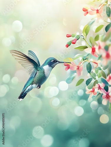 Hummingbird feeding on flower