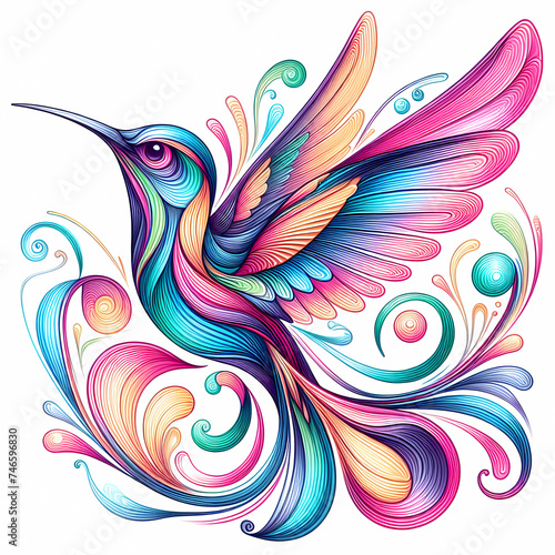 hummingbird vecor style PNG image with abstract line and color