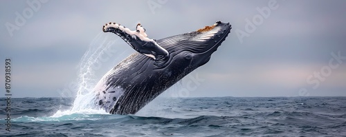 Humpback Whale Breaching Dramatically in Open Sea with Splash