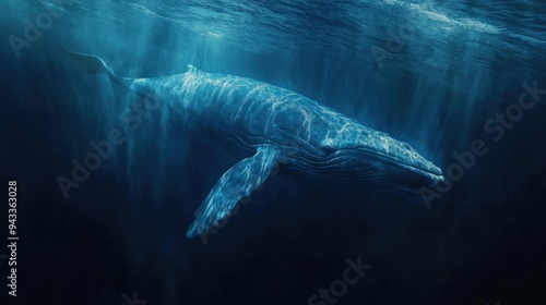 Humpback Whale Swimming Gracefully Through the Deep Blue Ocean