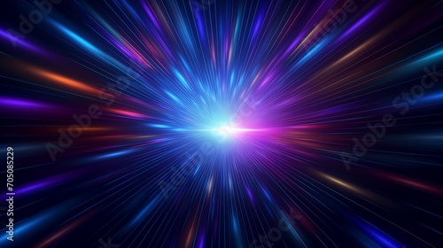 Hyper jump, Light speed, hyperspace, space warp background. Abstract cosmic background. Neon glowing rays in motion. Neon glowing rays in motion.