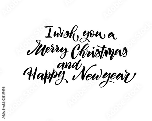 I wish you Merry christmas happy new year text vector on white background. Lettering for invitation, wedding and greeting card, prints and posters. Hand drawn inscription