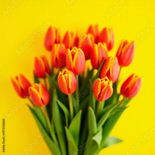 ibrant Orange Tulip Bouquet Against Bright Yellow Background