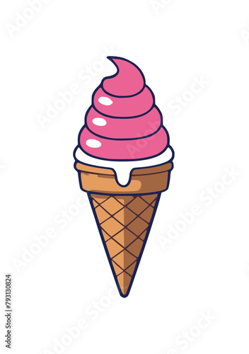 Ice Cream Cone Cartoon Vector Icon Illustration. Sweet Food Icon Concept Isolated Premium Vector. Flat Cartoon Style