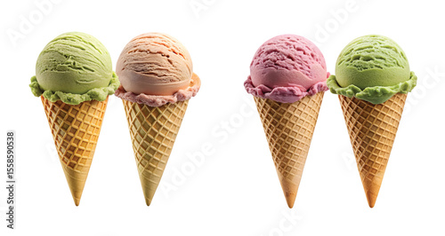 Ice Cream Cone Duo: Two different flavored ice cream scoops in one cone, vertical composition, sharp PNG