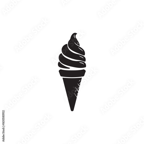 Ice Cream Cone Silhouette Icon, Soft Serve Vector Illustration on White Background