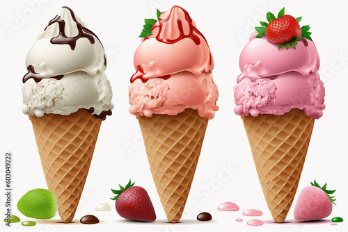 Ice cream cone three pieces different. Generative AI,