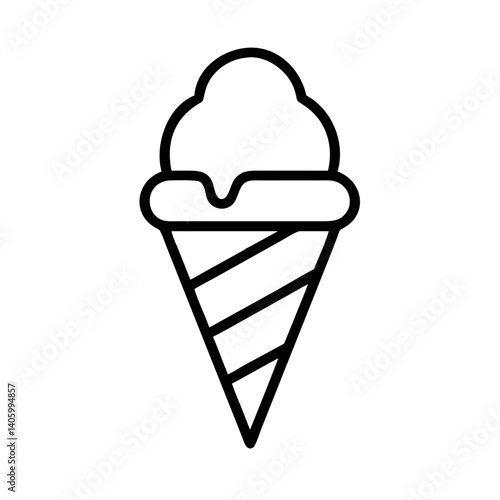 Ice cream cone vector illustration: summer dessert, sweet treat, frozen snack, outline drawing, art