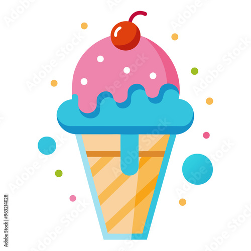Ice Cream Cone with Cherry on Top and Dripping Blue Syrup