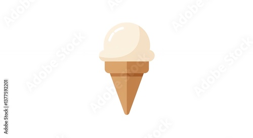 Ice Cream Cone with Vanilla Scoop Simple Graphic Isolated on White