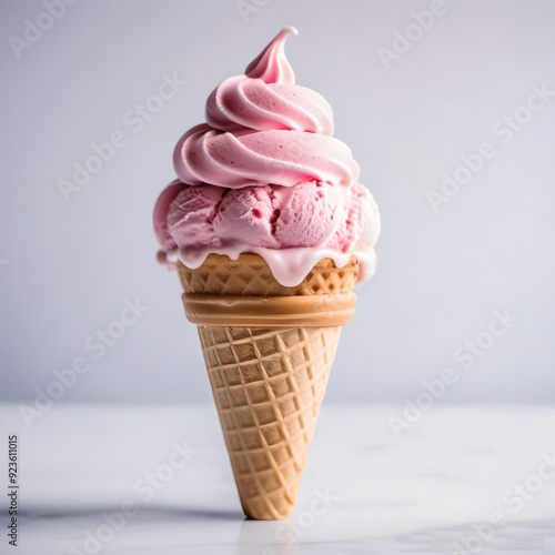 ice cream in a waffle cup on a table on a gray background. Generative ai