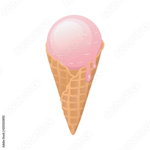 Ice cream in flat design. Fruit frozen milk dessert ball in wafer cone. Vector illustration isolated.