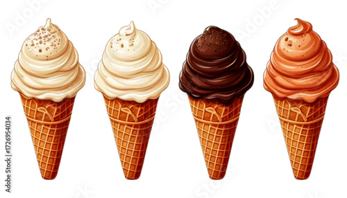 Ice Cream Scoop on Waffle Cone Duo Bundle Isolated on Transparent Background