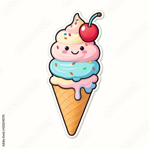 ice cream sticker, frozen treat sticker, dessert decal, ice cream cone sticker, frosted treat sticker, sweet dessert sticker, ice cream sundae sticker, kawaii ice cream, colorful ice cream decal, choc