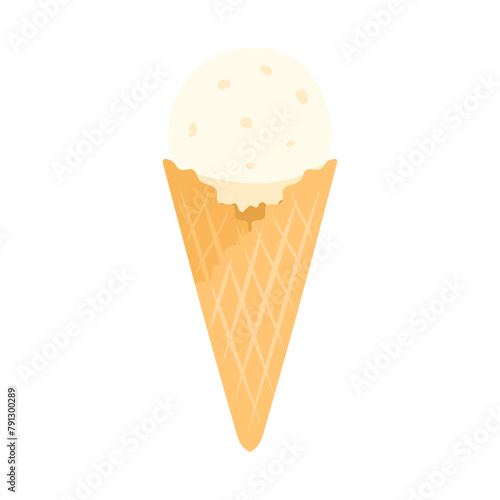 ワッフルコーンに入ったバニラ味のアイスクリーム。フラットなベクターイラスト。 Ice cream with vanilla flavor in a waffle cone. Flat vector illustration.