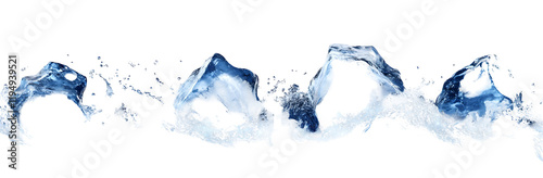 Ice Cubes Splashing Water, Isolated on Transparent Background