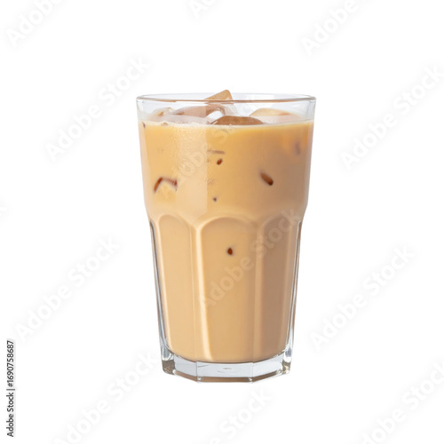 Iced Coffee Beverage in Transparent Glass Isolated on a Black Background with Cubed Ice