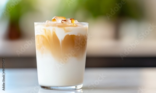 Iced Coffee Drink With Layered Milk and Espresso Served in a Clear Glass With Ice