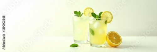 Iced lemonade with fresh mint leaves, clean white background, background, food, glass