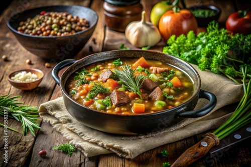 Icelandic Slátur: savor a hearty barley and herb stew, captured in stunning food photography.