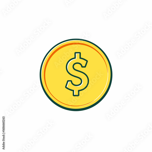 Icon Of A Gold Coin With A Prominent Dollar Sign Symbol Embedded In The Center