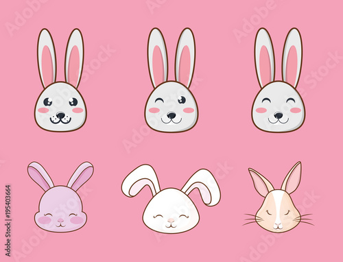 Icon set of cute rabbits over pink background, colorful design vector illustration