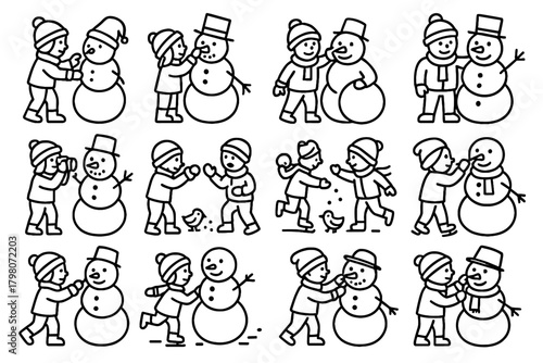 Icon skating activity near taking snowman hat rolling vector decorating icons birds