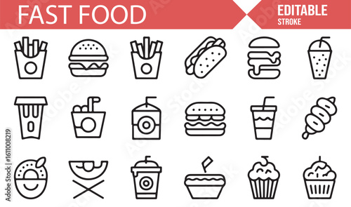 Icons of Fast Food Items like Burgers, Fries, and Ice Cream