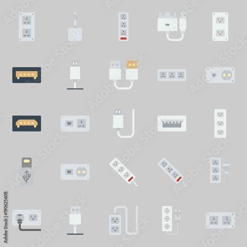 icons set about Connectors Cables. with usb, socket and usb cable