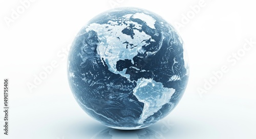 Icy Globe Reflecting America - A cool, icy globe reflects on a crisp white surface, symbolizing global connection, environmental fragility, technological advancement, mapping