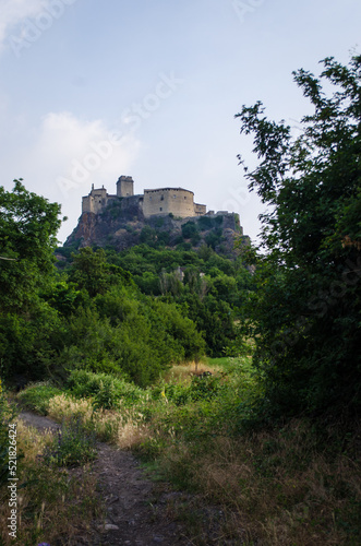 Il castello di Bardi, borgo lungo la Via degli abati, cammino che parte da Pavia e arriva a Pontremoli, visto dal basso
