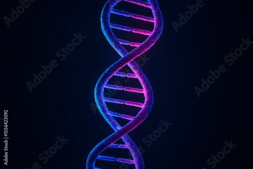 Illuminated dna strand in blue and purple on a dark background view