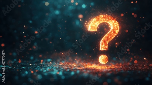Illuminated question mark symbolizing curiosity digital space graphic design abstract environment close-up view