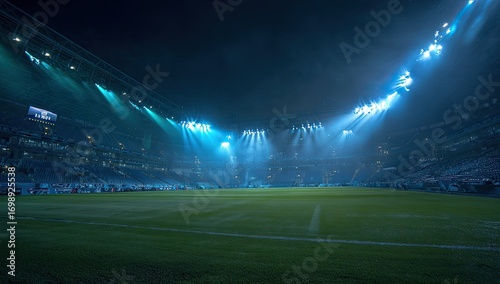 Illuminated soccer stadium at night