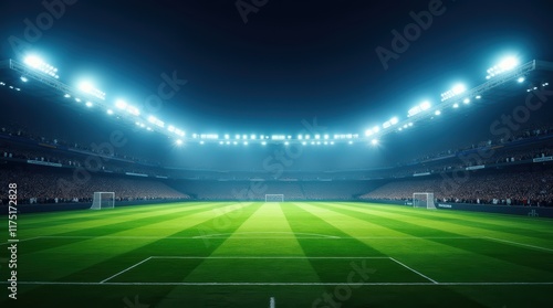 Illuminated Soccer Stadium Ready For Action Under Night Sky With Enthusiastic Crowd