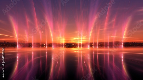 Illuminated Water Fountains at Sunset Reflecting Beauty