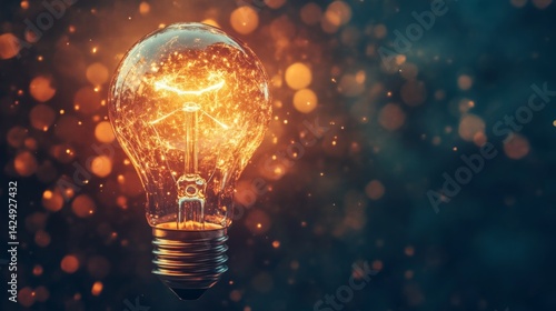 Illuminating ideas a glowing light bulb surrounded by sparkling bokeh creative concept studio environment close-up perspective