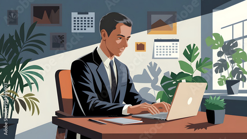 illustration businessman working in office