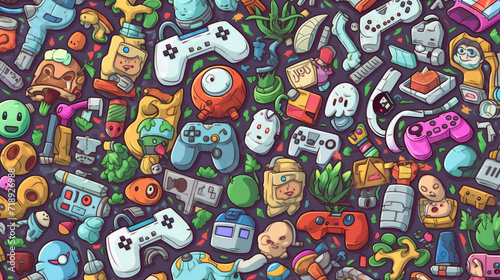 Illustration doodles gaming seamless pattern