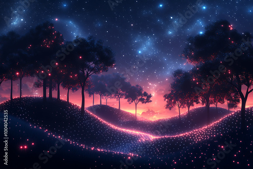 illustration featuring digital abstract technology with space for titles, layered over a forest background. Ideal for tech design concepts.